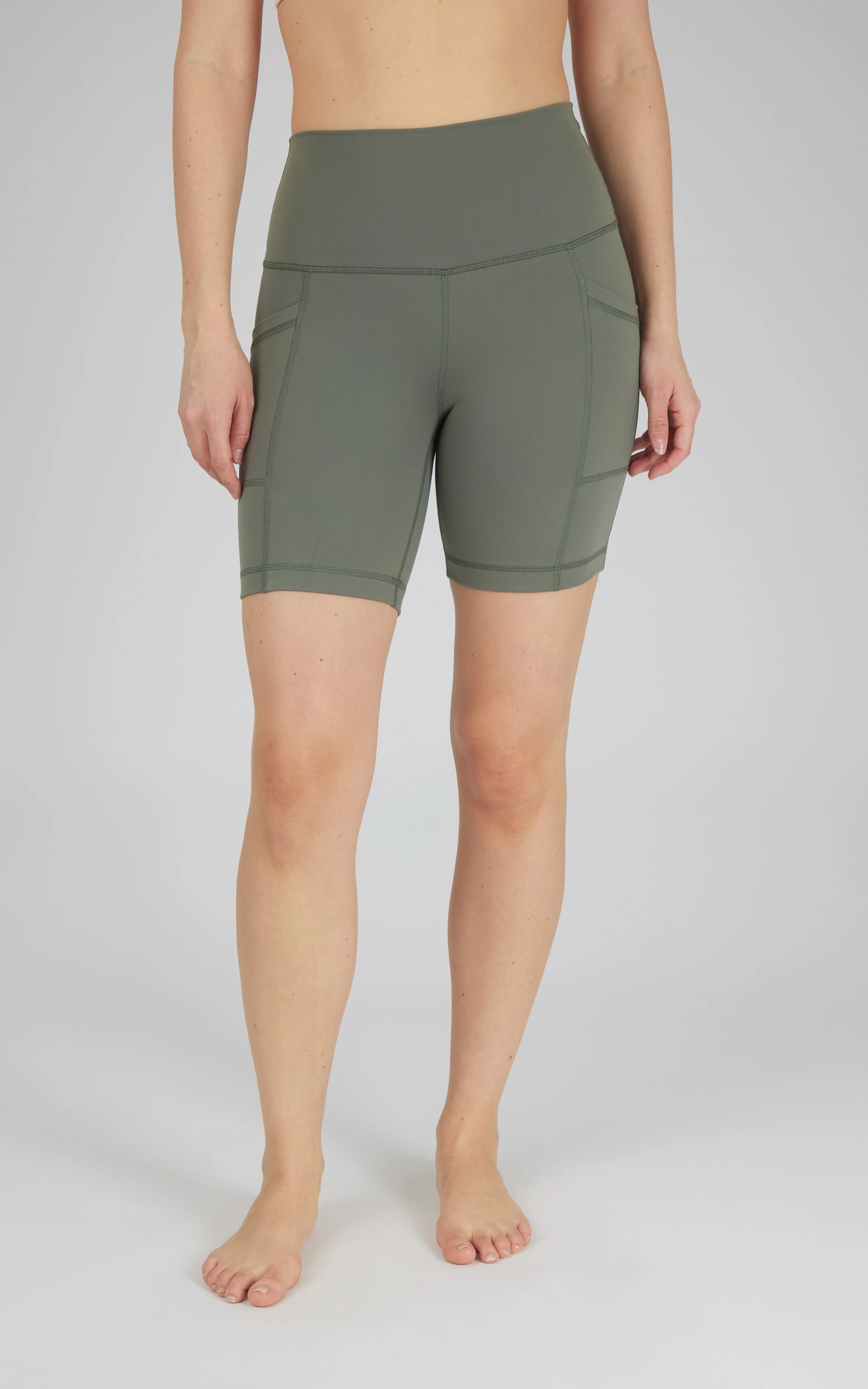 These 7” athletic shorts fit like a second skin, offering comfort and flexibility for any activity. The high-rise waistband boosts confidence, while side pockets conveniently store essentials.