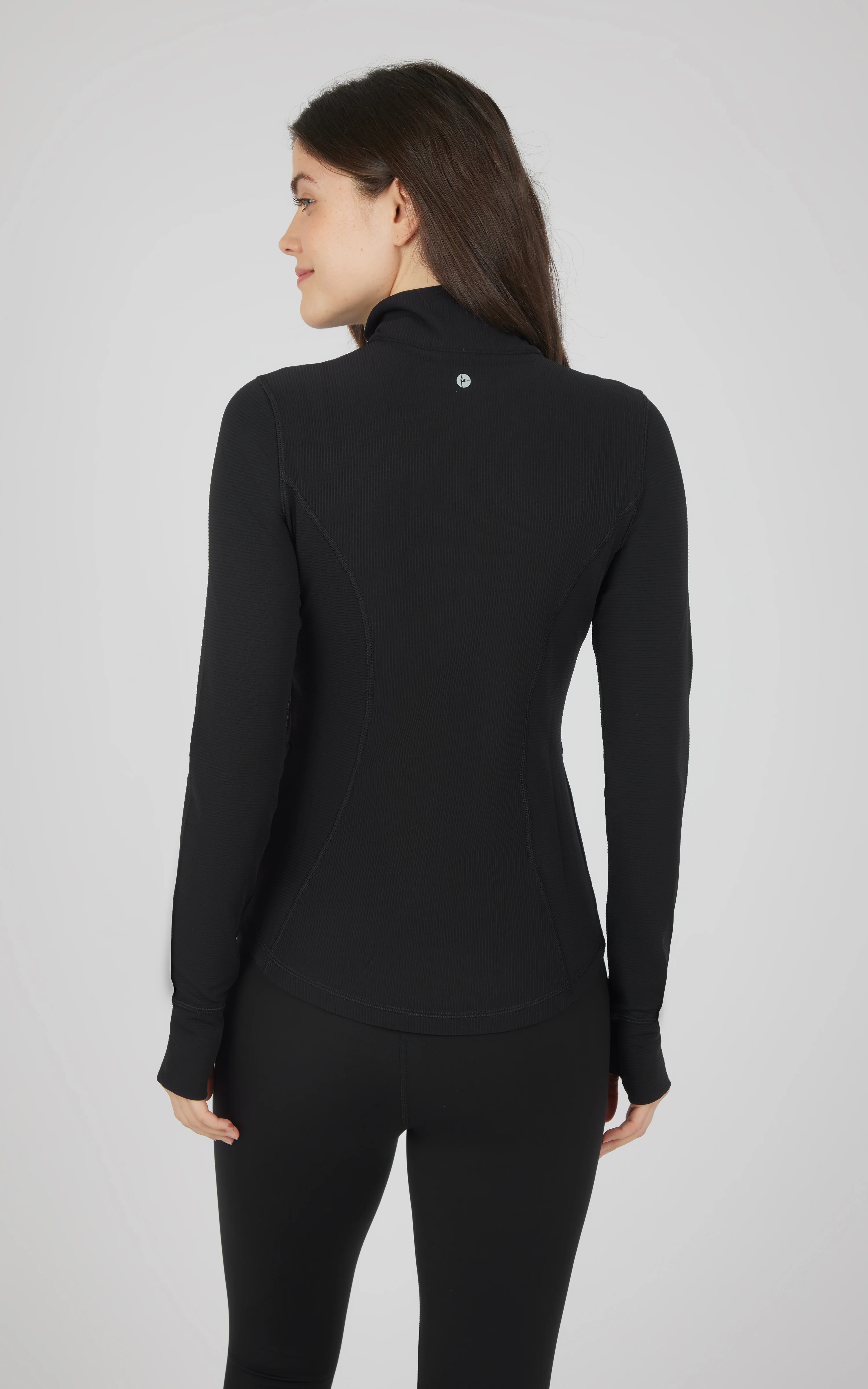 Introducing the Interlink Ribbed Princess Seam Performance Jacket, your ultimate go-to for running and workouts. Designed with sleek princess seams for a flattering fit, this jacket features a full zipper closure and thumbholes to keep your sleeves in place during movement. The ribbed texture not only adds style but also enhances comfort, while its moisture-wicking fabric ensures you stay dry and comfortable no matter how intense your workout gets. Perfect for both performance and layering, this jacket is your next favorite addition to your active wardrobe.