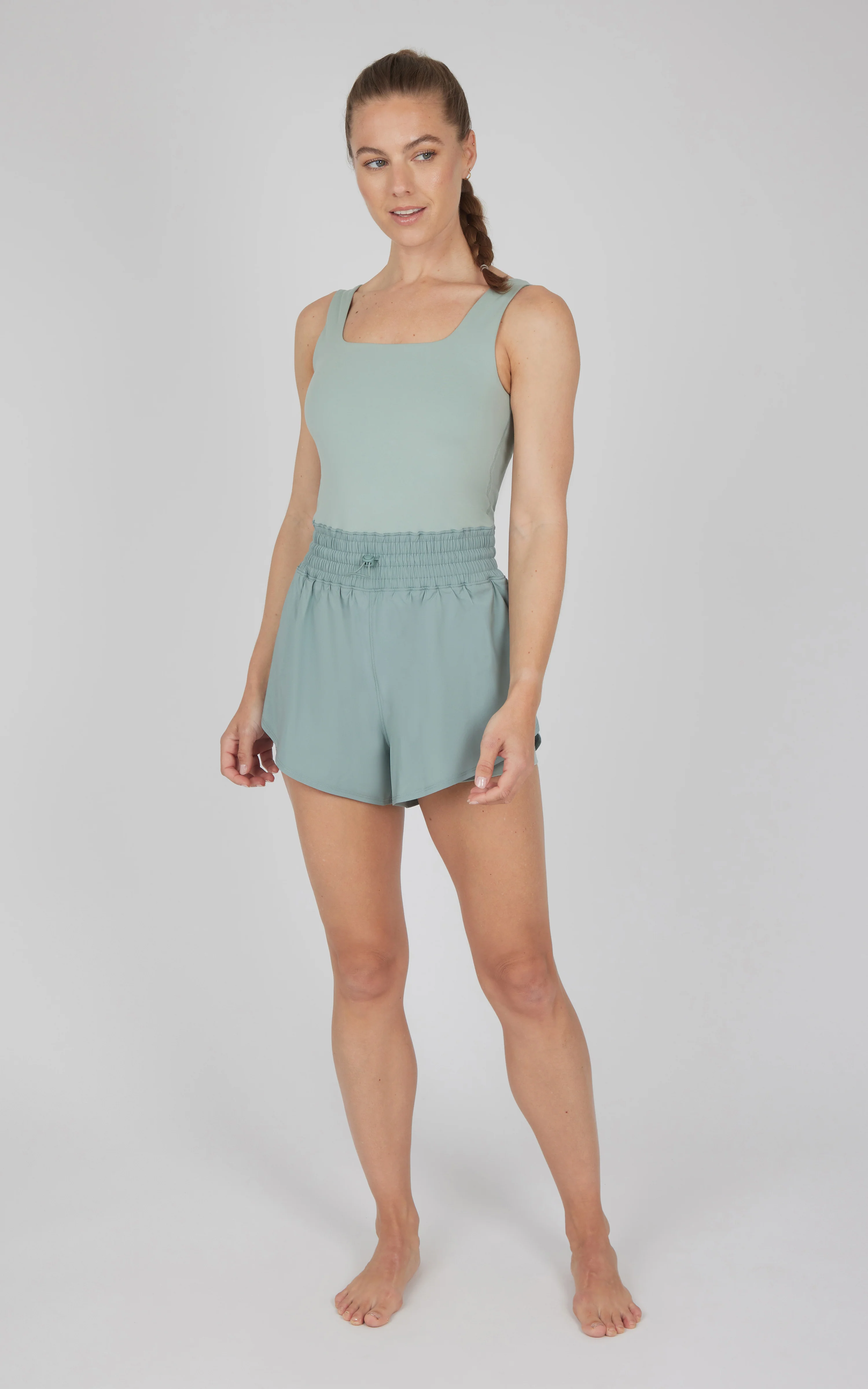 This Lux Hybrid Short Romper features a smocked toggle waist that provides a comfortable and flattering fit for all body types. The stretchy material allows for easy movement while maintaining a sleek look. Perfect for a day out or a night on the town.